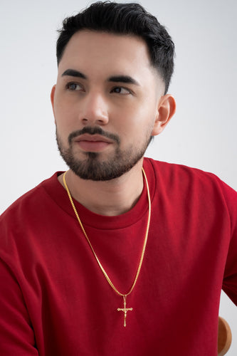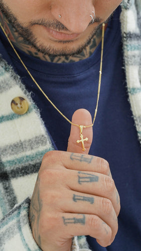 Cadena cubana con destellos 60cm + Dije Cruz Inri Delgada 1.5cms