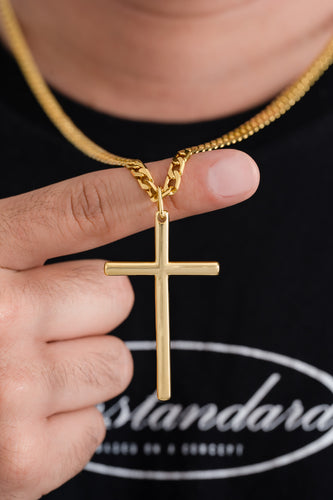 cadena cubana semigruesa 5mm (65cm) + Dije Cruz Lúmen 5.1 Cms