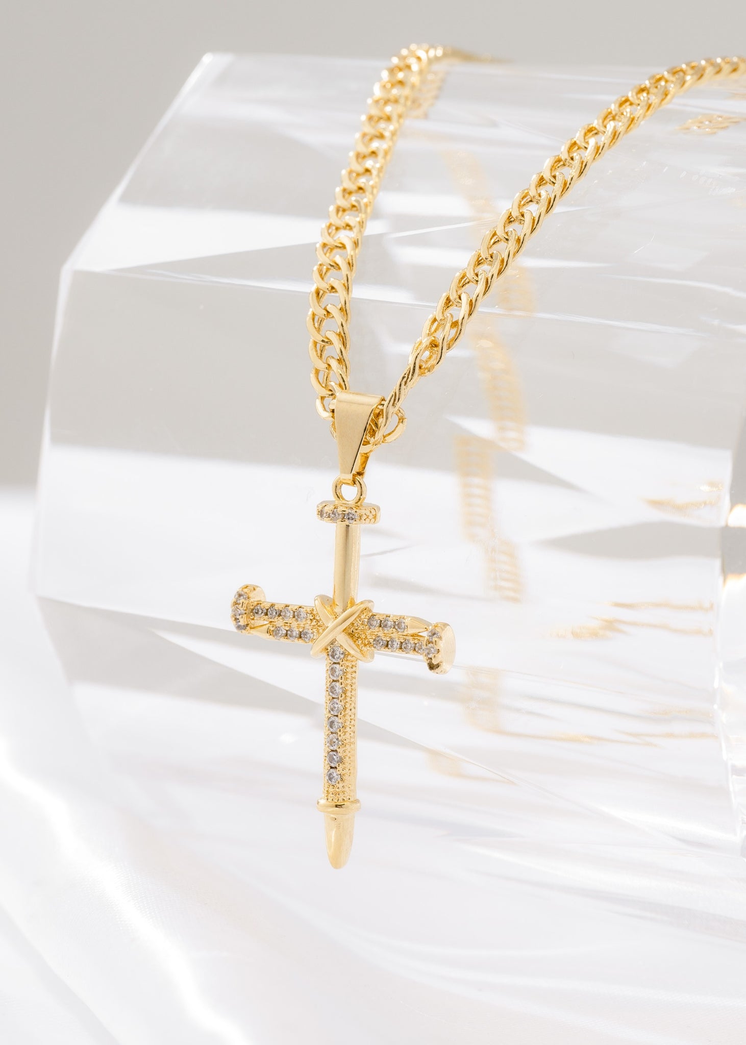 Cadena continua 4mm 65cm + dije cruz clavos circonias cristal