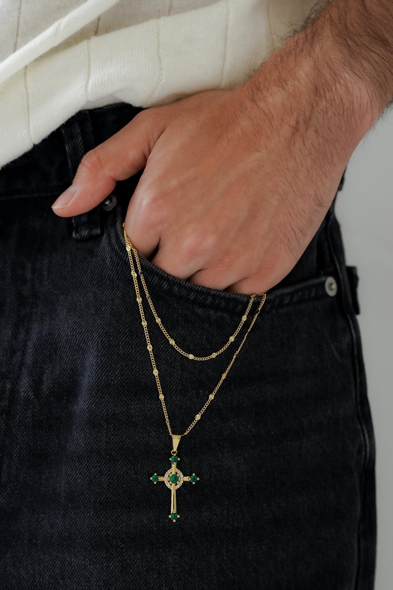Cadena cubana sol 65cm + dije cruz verde
