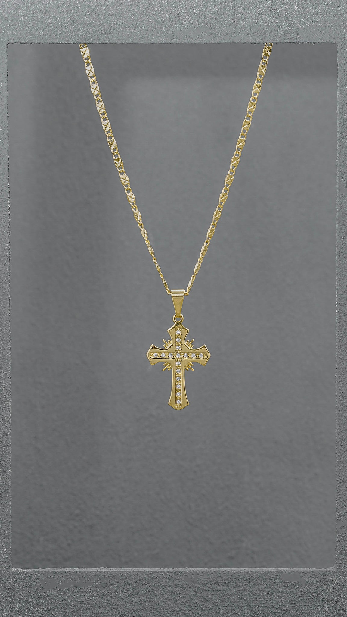Cadena Destellos 2.5mm ( 65cms ) + Dije Cruz Sagrada Circonias Cristal