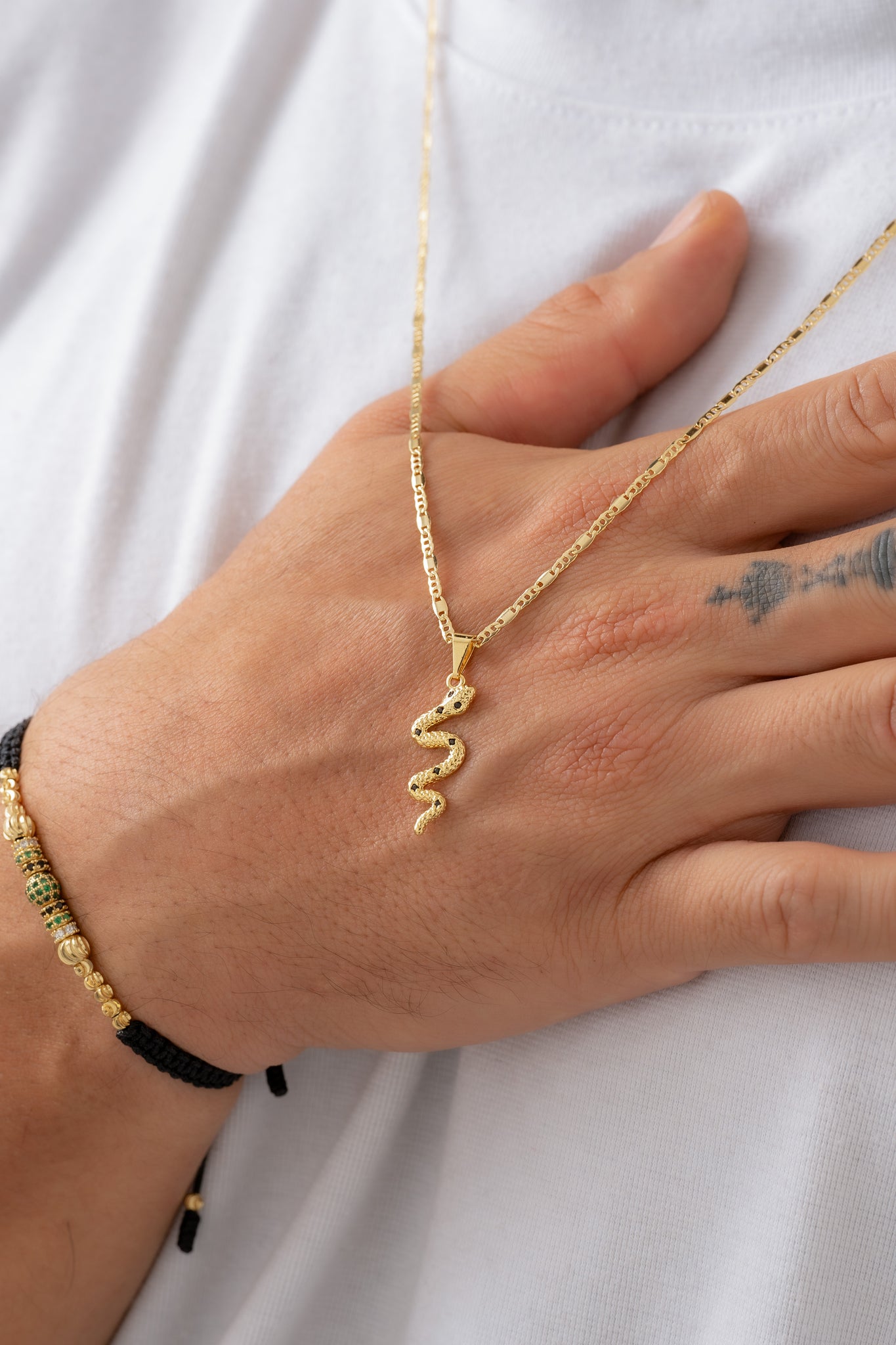 Cadena escalera y plana 65cms +  dije serpiente negra