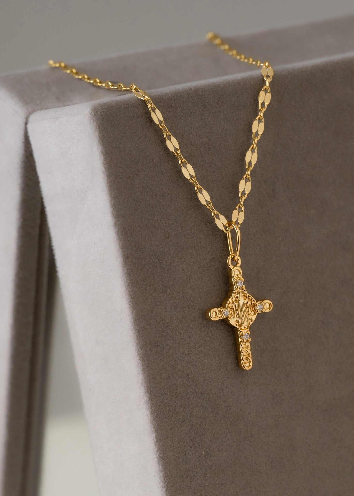 Cadena espejo cuadrada 65cm + dije cruz san Benito 2cms